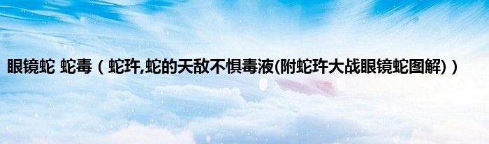 大家好,眼镜蛇 蛇毒,蛇玝,蛇的天敌不惧毒液(附蛇玝大战眼镜蛇图解)很多人还不知道,现在让我们一起来看看吧!