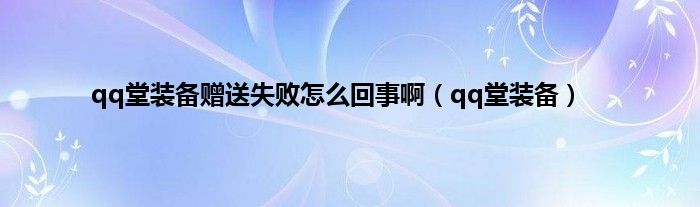大家好,小问来为大家解答以上问题。qq堂装备赠送失败怎么回事啊,qq堂装备这个很多人还不知道,现在让我们一起来看看吧!
