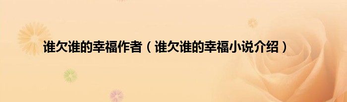 大家好,谁欠谁的幸福作者,谁欠谁的幸福小说介绍很多人还不知道,现在让我们一起来看看吧!