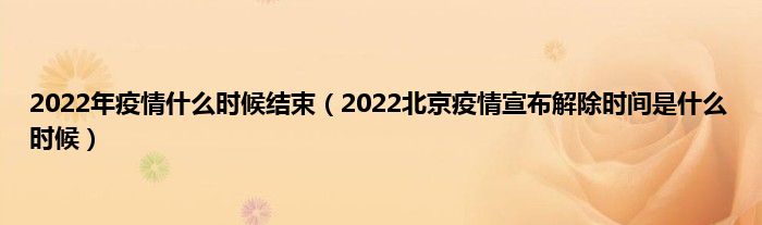 本文,2022年疫情什么时候结束,2022北京疫情宣布解除时间是什么时候到此就分享完毕,希望对大家有所帮助。