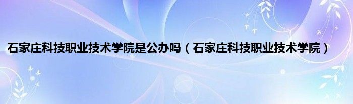 以上就是【石家庄科技职业技术学院是公办吗,石家庄科技职业技术学院】相关内容。