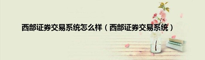 大家好,小问来为大家解答以上问题。西部证券交易系统怎么样,西部证券交易系统这个很多人还不知道,现在让我们一起来看看吧!