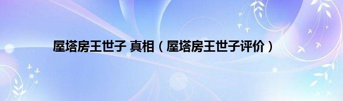 本文,屋塔房王世子 真相,屋塔房王世子评价到此就分享完毕,希望对大家有所帮助。