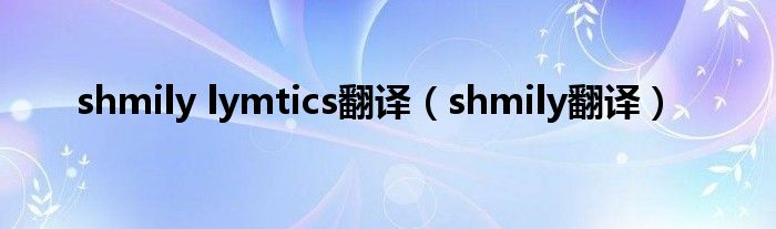大家好,小问来为大家解答以上问题。shmily lymtics翻译,shmily翻译这个很多人还不知道,现在让我们一起来看看吧!