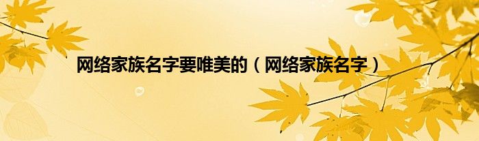 大家好,小问来为大家解答以上问题。网络家族名字要唯美的,网络家族名字这个很多人还不知道,现在让我们一起来看看吧!