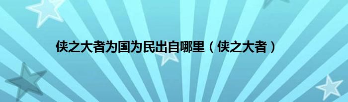 大家好,小问来为大家解答以上问题。侠之大者为国为民出自哪里,侠之大者这个很多人还不知道,现在让我们一起来看看吧!