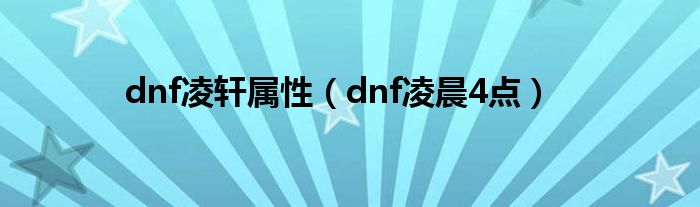 大家好,小问来为大家解答以上问题。dnf凌轩属性,dnf凌晨4点这个很多人还不知道,现在让我们一起来看看吧!