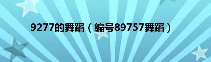 大家好,小问来为大家解答以上问题。9277的舞蹈,编号89757舞蹈这个很多人还不知道,现在让我们一起来看看吧!