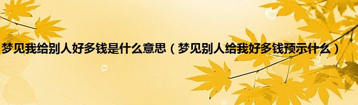 大家好,综合小编来为大家讲解下。梦见我给别人好多钱是什么意思,梦见别人给我好多钱预示什么这个很多人还不知道,现在让我们一起来看看吧!