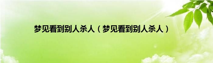 大家好,综合小编来为大家讲解下。梦见看到别人杀人,梦见看到别人杀人这个很多人还不知道,现在让我们一起来看看吧!