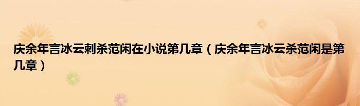 大家好,庆余年言冰云刺杀范闲在小说第几章,庆余年言冰云杀范闲是第几章很多人还不知道,现在让我们一起来看看吧!