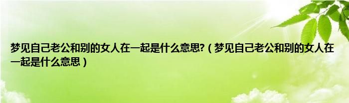 大家好,综合小编来为大家讲解下。梦见自己老公和别的女人在一起是什么意思?,梦见自己老公和别的女人在一起是什么意思这个很多人还不知道,现在让我们一起来看看吧!