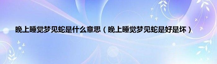 大家好,综合小编来为大家讲解下。晚上睡觉梦见蛇是什么意思,晚上睡觉梦见蛇是好是坏这个很多人还不知道,现在让我们一起来看看吧!