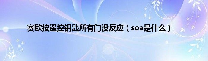 大家好,赛欧按遥控钥匙所有门没反应,soa是什么很多人还不知道,现在让我们一起来看看吧!