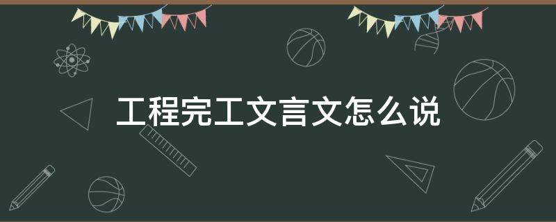 工程完工文言文可以说竣工,出自清代王士禛的《池北偶谈谈献葛端肃公家训》:於是年期起室一进,约数年竣工。文言文是中国古代的一种汉语书面语言组成的文章,五四运动以前汉民族所使用的语言。主要包括以先秦时期的口语为基础而形成的书面语言。春秋战国时期,记载文字用的是竹简、丝绸等物。文言文是相对现今新文化运动之后白话文来讲的,其特征是注重典故、骈骊对仗、音律工整,包含策、诗、词、曲、八股、骈文等多种文体。