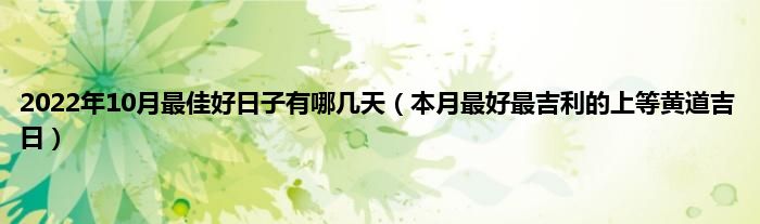 大家好,综合小编来为大家讲解下。2022年10月最佳好日子有哪几天,本月最好最吉利的上等黄道吉日这个很多人还不知道,现在让我们一起来看看吧!