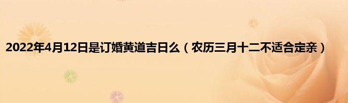 大家好,综合小编来为大家讲解下。2022年4月12日是订婚黄道吉日么,农历三月十二不适合定亲这个很多人还不知道,现在让我们一起来看看吧!