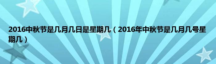大家好,综合小编来为大家讲解下。2016中秋节是几月几日是星期几,2016年中秋节是几月几号星期几这个很多人还不知道,现在让我们一起来看看吧!