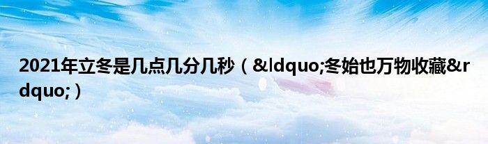 大家好,综合小编来为大家讲解下。2021年立冬是几点几分几秒,“冬始也万物收藏”这个很多人还不知道,现在让我们一起来看看吧!