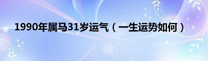 大家好,综合小编来为大家讲解下。1990年属马31岁运气,一生运势如何这个很多人还不知道,现在让我们一起来看看吧!