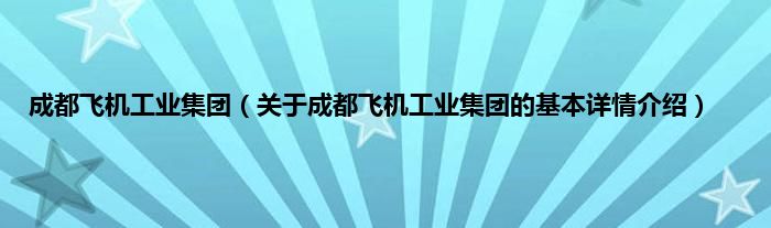 本文关于成都飞机工业集团的基本详情介绍就讲解完毕,希望对大家有所帮助。