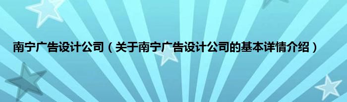 本文关于南宁广告设计公司的基本详情介绍就讲解完毕,希望对大家有所帮助。