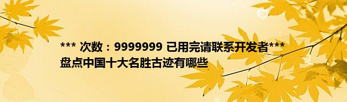 大家好,综合小编来为大家讲解下。*** 次数:9999999 已用完请联系开发者*** 盘点中国十大名胜古迹有哪些这个很多人还不知道,现在让我们一起来看看吧!