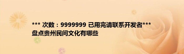 大家好,综合小编来为大家讲解下。*** 次数:9999999 已用完请联系开发者*** 盘点贵州民间文化有哪些这个很多人还不知道,现在让我们一起来看看吧!