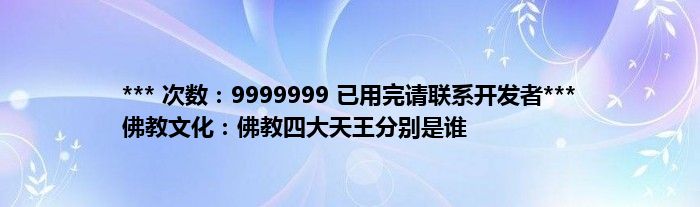 大家好,综合小编来为大家讲解下。*** 次数:9999999 已用完请联系开发者*** 佛教文化:佛教四大天王分别是谁这个很多人还不知道,现在让我们一起来看看吧!