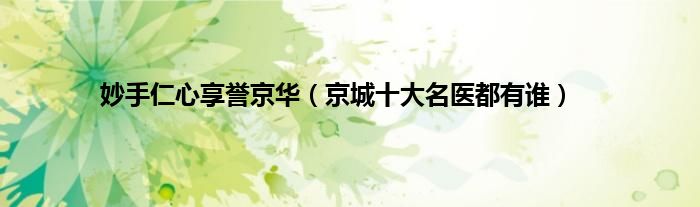 大家好,综合小编来为大家讲解下。妙手仁心享誉京华,京城十大名医都有谁这个很多人还不知道,现在让我们一起来看看吧!