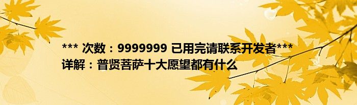 大家好,综合小编来为大家讲解下。*** 次数:9999999 已用完请联系开发者*** 详解:普贤菩萨十大愿望都有什么这个很多人还不知道,现在让我们一起来看看吧!