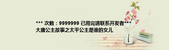 本文*** 次数:9999999 已用完请联系开发者*** 大唐公主故事之太平公主是谁的女儿到此分享完毕,希望对大家有所帮助。