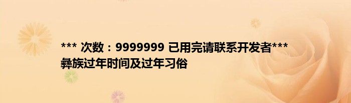 本文*** 次数:9999999 已用完请联系开发者*** 彝族过年时间及过年习俗到此分享完毕,希望对大家有所帮助。