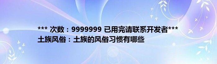 本文*** 次数:9999999 已用完请联系开发者*** 土族风俗:土族的风俗习惯有哪些到此分享完毕,希望对大家有所帮助。