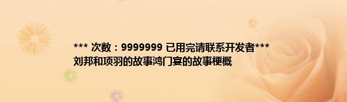 本文*** 次数:9999999 已用完请联系开发者*** 刘邦和项羽的故事鸿门宴的故事梗概到此分享完毕,希望对大家有所帮助。