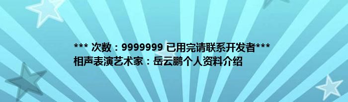 本文*** 次数:9999999 已用完请联系开发者*** 相声表演艺术家:岳云鹏个人资料介绍到此分享完毕,希望对大家有所帮助。