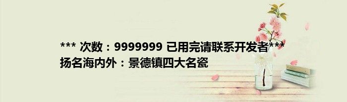 大家好,综合小编来为大家讲解下。*** 次数:9999999 已用完请联系开发者*** 扬名海内外:景德镇四大名瓷这个很多人还不知道,现在让我们一起来看看吧!