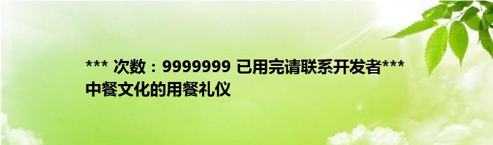 本文*** 次数:9999999 已用完请联系开发者*** 中餐文化的用餐礼仪到此分享完毕,希望对大家有所帮助。