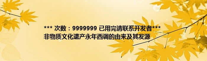 *** 次数:9999999 已用完请联系开发者*** 非物质文化遗产永年西调的由来及其发源