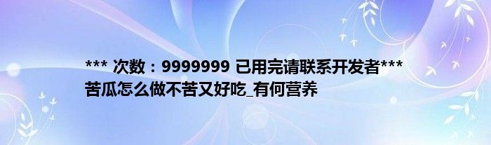 本文*** 次数:9999999 已用完请联系开发者*** 苦瓜怎么做不苦又好吃_有何营养到此分享完毕,希望对大家有所帮助。