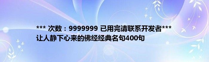 大家好,综合小编来为大家讲解下。*** 次数:9999999 已用完请联系开发者*** 让人静下心来的佛经经典名句400句这个很多人还不知道,现在让我们一起来看看吧!