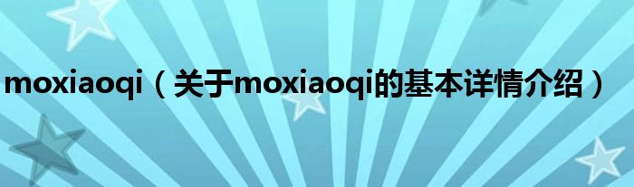 moxiaoqi(关于moxiaoqi的基本详情介绍)