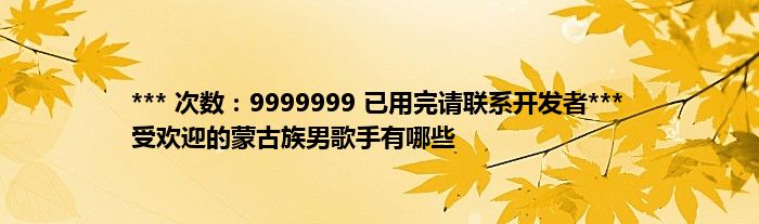 大家好,综合小编来为大家讲解下。*** 次数:9999999 已用完请联系开发者*** 受欢迎的蒙古族男歌手有哪些这个很多人还不知道,现在让我们一起来看看吧!