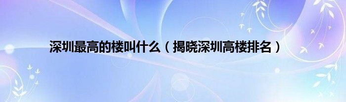 大家好,综合小编来为大家讲解下。深圳最高的楼叫什么,揭晓深圳高楼排名这个很多人还不知道,现在让我们一起来看看吧!