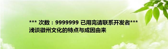 大家好,综合小编来为大家讲解下。*** 次数:9999999 已用完请联系开发者*** 浅谈徽州文化的特点与成因由来这个很多人还不知道,现在让我们一起来看看吧!