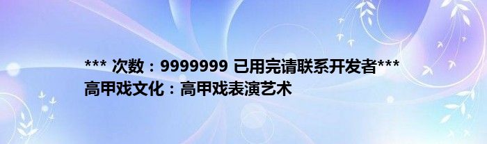 本文*** 次数:9999999 已用完请联系开发者*** 高甲戏文化:高甲戏表演艺术到此分享完毕,希望对大家有所帮助。
