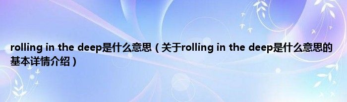 本文关于rolling in the deep是什么意思的基本详情介绍就讲解完毕,希望对大家有所帮助。