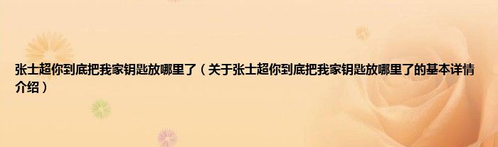 本文关于张士超你到底把我家钥匙放哪里了的基本详情介绍就讲解完毕,希望对大家有所帮助。