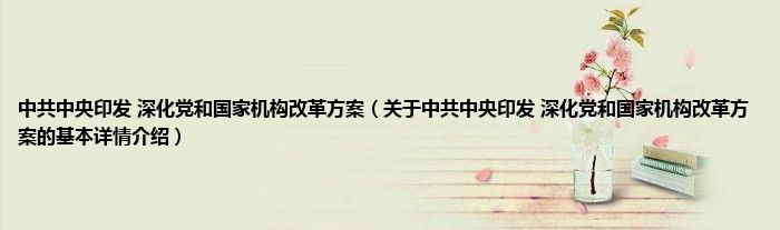 本文关于中共中央印发 深化党和国家机构改革方案的基本详情介绍就讲解完毕,希望对大家有所帮助。