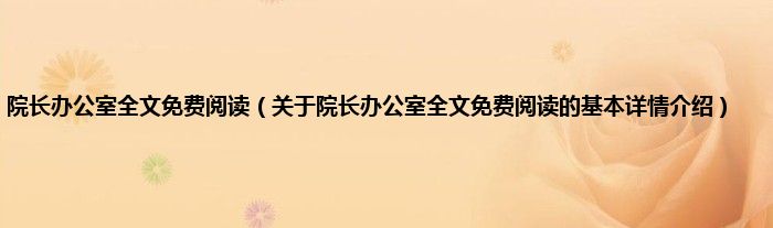 本文关于院长办公室全文免费阅读的基本详情介绍就讲解完毕,希望对大家有所帮助。